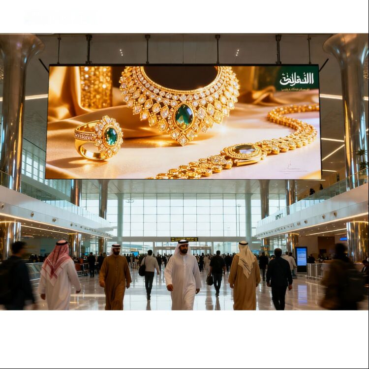 Estande no corredor central do centro comercial: ecrã LED ultrafino, exibição de dois lados de informações de promoção de produtos ou imagem de marca, atraindo a atenção de ambos os lados.